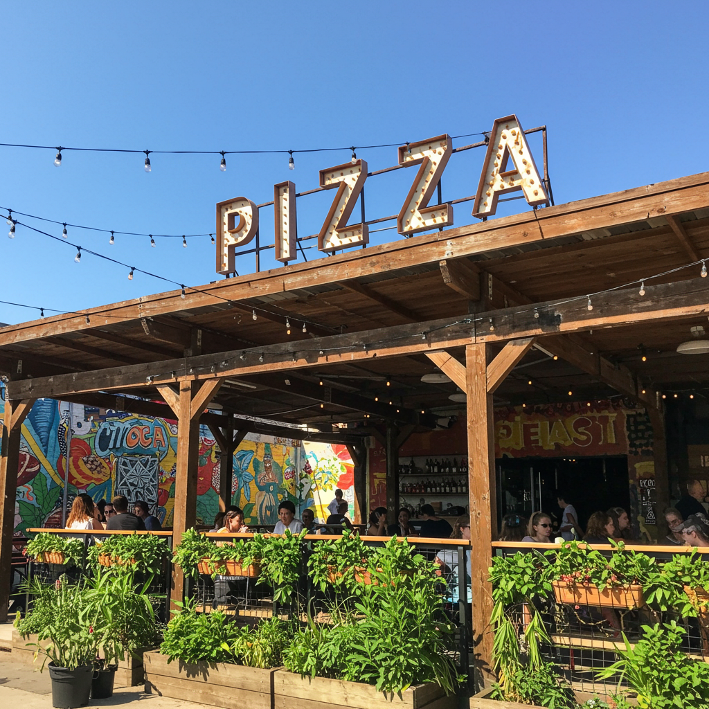 Located on the corner of Jerrold and 3rd, this pizza venue reminds us of the rustic colorful vibe of a Southern outdoor eatery. According to owner and founder Kristin Houk “my business started with the desire to bring delicious, healthy food to the Bayview. So I built it”. Kristin has lived in the Bayview for over 15 years and started her community business with the goal to bring good food and sustainability to the neighborhood. All Good Pizza boasts a laid back atmosphere with communal outdoor seating, chalk on the tables for kids, and a walk-up food truck with a delicious selection of brick oven pizzas, paninis, and organic salads.